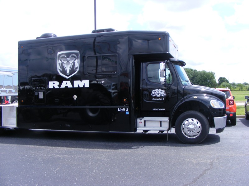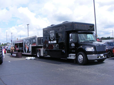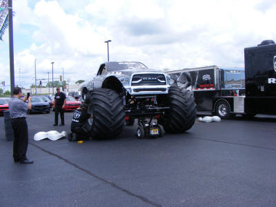 The truck spent the afternoon at the Ram dealership and was scheduled to make an appearance at the Lincoln Speedway in the evening, where it would give a car crushing demonstration during the Friday night race schedules.