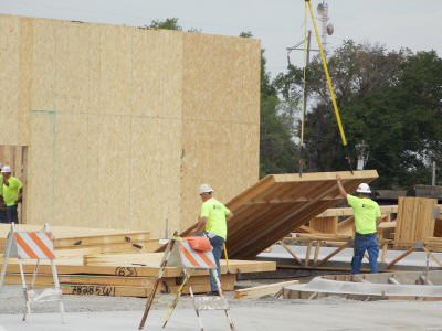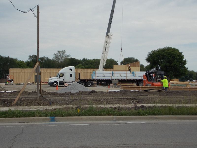 come as the crews worked today to raise the walls of the new store.