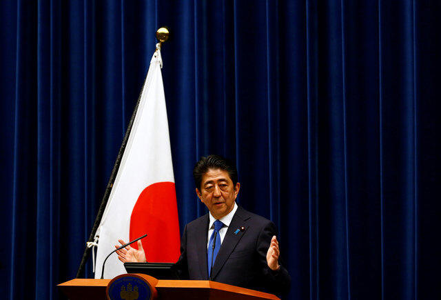 Japan's Prime Minister Shinzo Abe attends a news conference at his