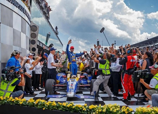 on top of world after slowing to Indy 500 win