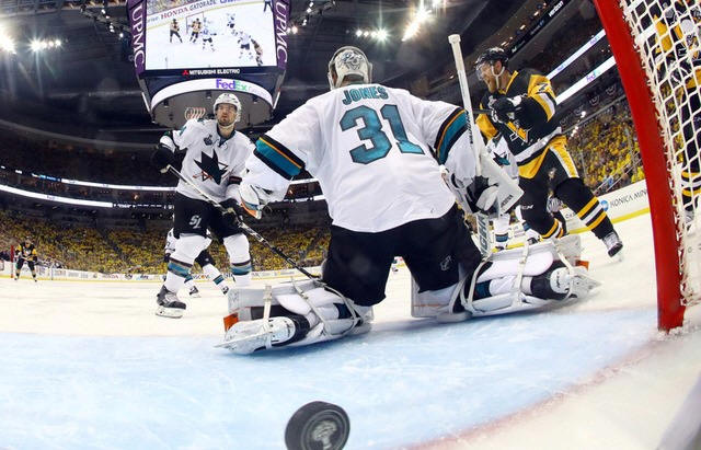 game-winning goal by Conor Sheary (not pictured) past San Jose