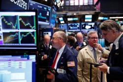 Traders work on the floor of the New York Stock Exchange in New