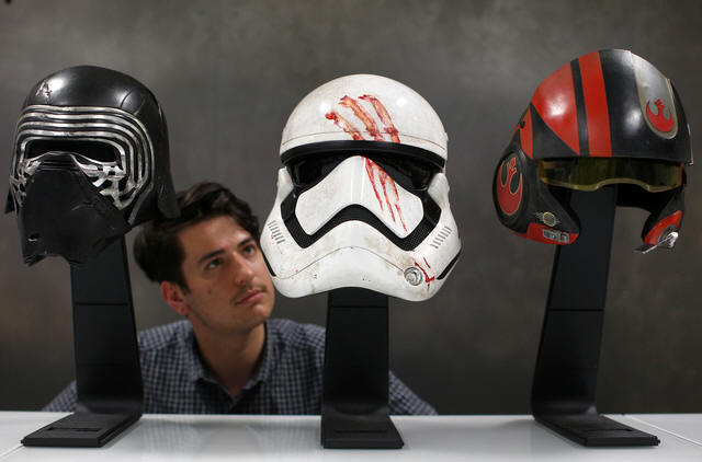 prop replicas, also including Finn's bloodied Stormtrooper helmet