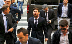 court with his father Jorge Horacio Messi (3rd R) to stand trial for