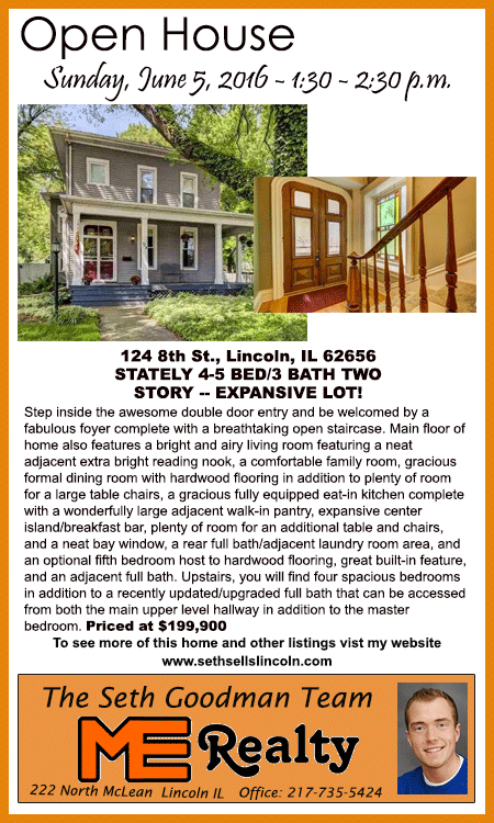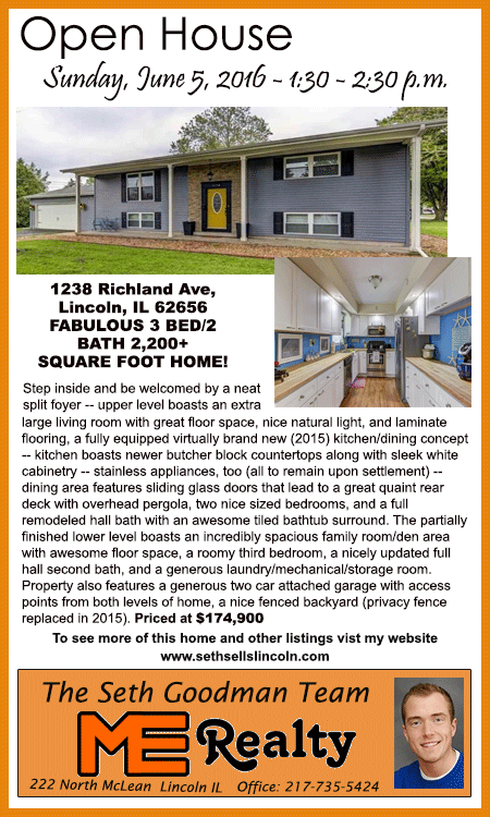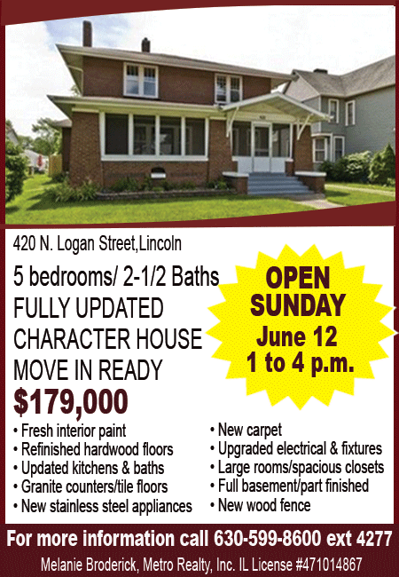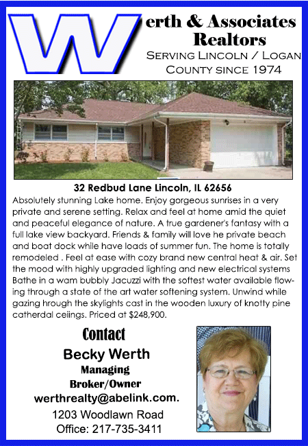 All real estate advertised in the Lincoln Daily News is subject to the Fair Housing Act for 1968 which makes it illegal to advertised "any preference, limitation, or discrimination based on race, color, religion, sex or national origin, or intention to make special preference, limitations, or discrimination."