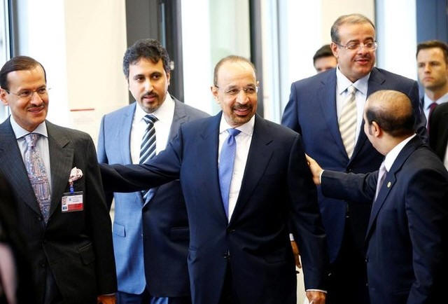 Saudi Arabia's Energy Minister Khalid al-Falih (C) arrives for a