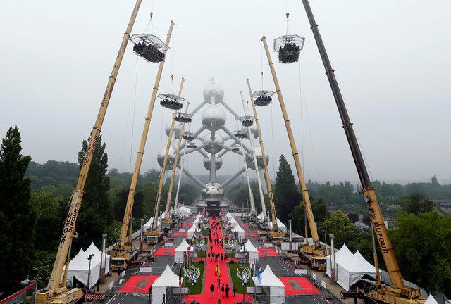 Dinner in the Sky at Brussels' Atomium, a complex of steel