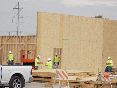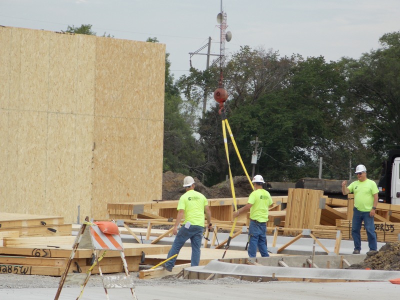 come as the crews worked today to raise the walls of the new store.