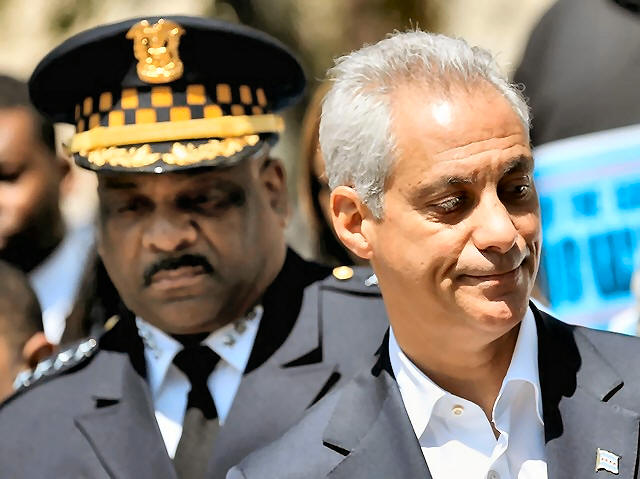 Chicago Mayor Rahm Emanuel (R) and Chicago Police Superintendent