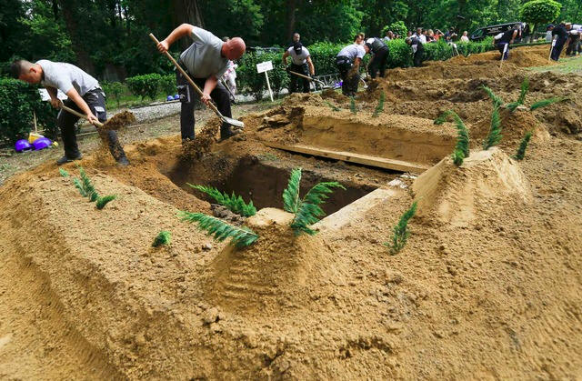 Gravediggers take part in the first Hungarian grave digging
