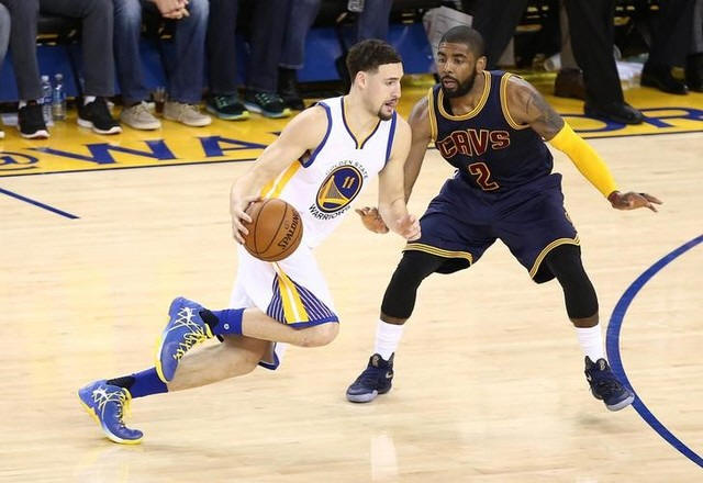 Warriors guard Klay Thompson (11) moves the ball against