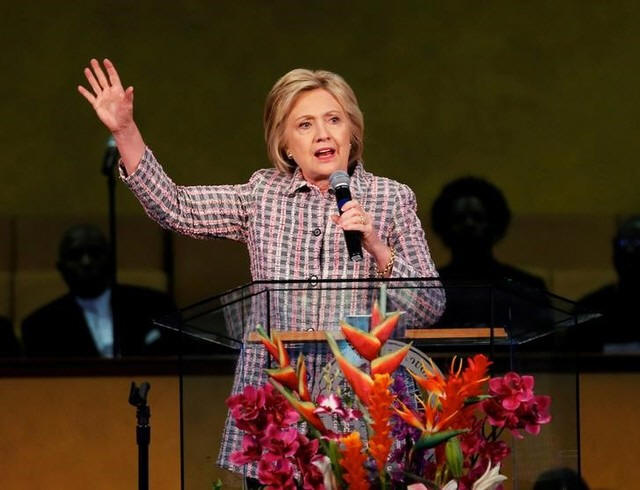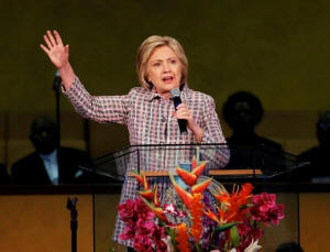Democratic presidential candidate Hillary Clinton speaks to the