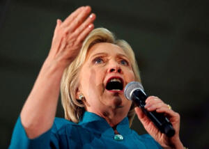 Democratic presidential candidate Hillary Clinton speaks during a