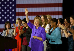 Democratic presidential candidate Hillary Clinton waves after