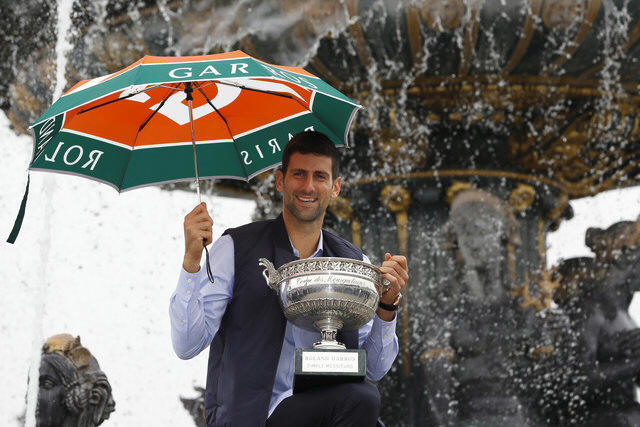 Novak Djokovic of Serbia poses with the trophy at Place de la