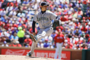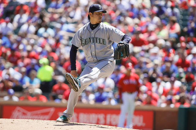 Mariners starting pitcher Hisashi Iwakuma (18) pitches in the third