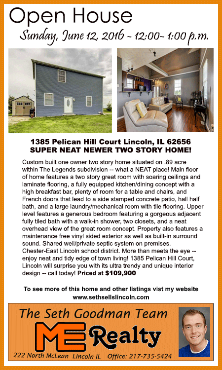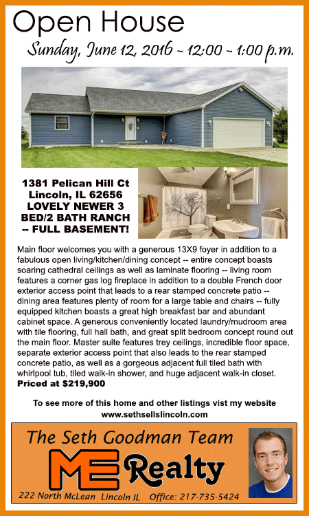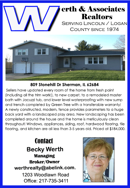 All real estate advertised in the Lincoln Daily News is subject to the Fair Housing Act for 1968 which makes it illegal to advertised "any preference, limitation, or discrimination based on race, color, religion, sex or national origin, or intention to make special preference, limitations, or discrimination."