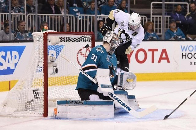 Penguins center Evgeni Malkin (71) scores a power play goal past
