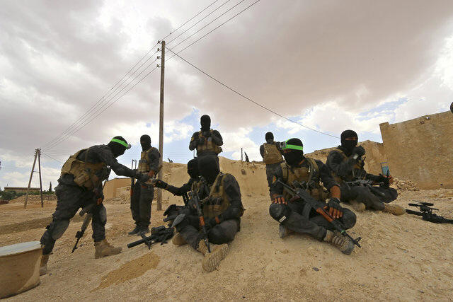 Special forces from the Syria Democratic Forces gather in Haj