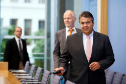 German Economy Minister Sigmar Gabriel (R) and state secretary