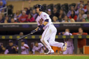 Twins second baseman Brian Dozier (2) hits a walk off home run in