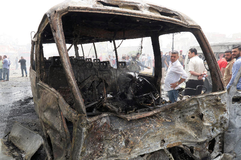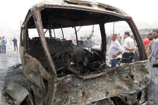 inspect the site of car bomb attack in Baghdad al-Jadeeda,