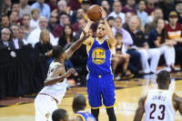 Warriors guard Stephen Curry (30) shoots the ball over Cleveland