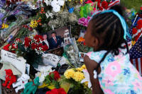 A girl views a memorial outside the