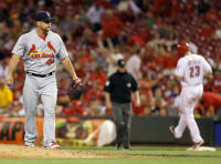 mound after the Cardinals defeated the Cincinnati Reds 3-2 at
