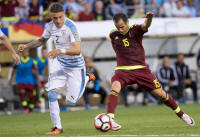 Venezuela midfielder Alejandro Guerra (15) shoots against
