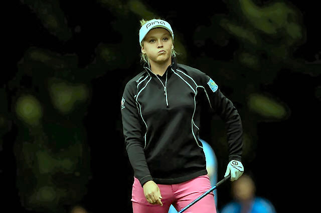 Brooke Henderson checks out the 7th tee during the first round