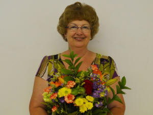 According to daughter Renee Martin, “Mom was surrounded by her fellow colleagues, principal, superintendent, and the president of the school board, along with some family. Ann Olson, Shelley Mason and Jennifer Bone gave a small introductory speech and Mr. Newton presented Mom with a glass vase. Fried chicken was provided by MPEA and her colleagues brought various food items to eat. They were all delicious, by the way. Mom was also given cards and a lovely bouquet of flowers.”