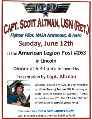 $20.00 each at selected State Bank of Lincoln locations. If you sponsor a table