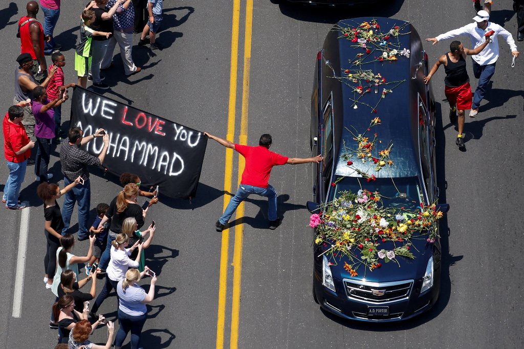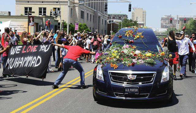 Muhammad Ali as it drives down Broadway toward Cave Hill