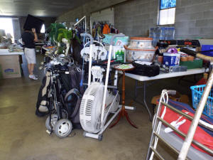 In the furniture area, on Wednesday, there were two nice couches, an antique wooden dining table, several chairs, and lots of other nice items. There is also a selection of kids’ toys and games, and golf clubs and exercise equipment.