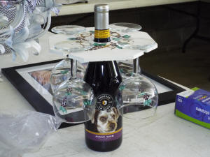 Wheat pointed out a couple of favorite items that she hopes will be quick sales. One is a cute wine bottle labeled Chateau La Paws. It features a sweet little dog on the label, but also comes with a handmade wine glass holder and four matching stemmed glasses.