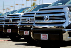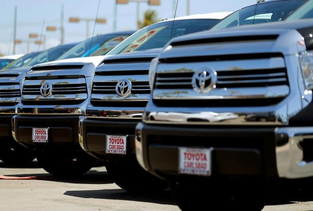 Toyota trucks are shown for sale at a dealership in Carlsbad,