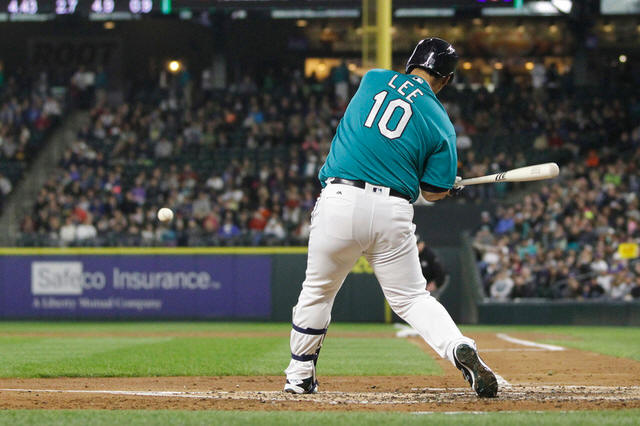 Mariners first baseman Dae-Ho Lee (10) connects for a solo home run