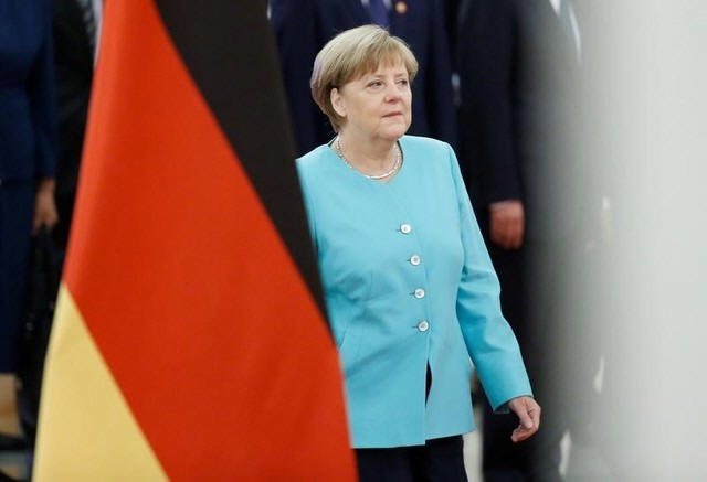 German Chancellor Angela Merkel attends a welcoming ceremony at the