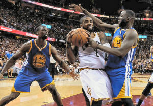 Cavaliers guard Kyrie Irving (2) handles the ball against Golden