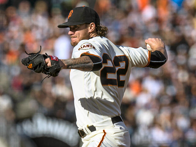 Giants starting pitcher Jake Peavy (22) throws a pitch during the