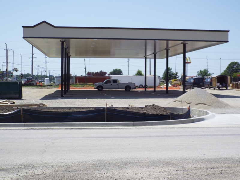 The shelter for the gas pumps is also in place as one can see the