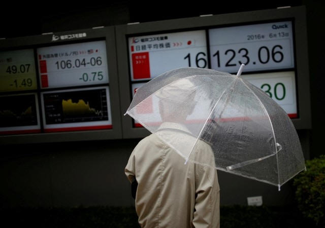 average (R) outside a brokerage in Tokyo, Japan, June 13, 2016.