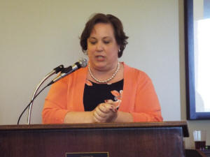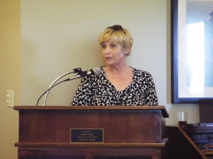 The final official from the nursing home to speak was Cheri Lowney, who is a vice-president with Heritage Enterprises. She said that it was a privilege to be a part of the celebration on behalf of Heritage and that working with this nursing home and this community was a great pleasure. She said that regarding the residents and the quality of care, this is one of the finest facilities, due in no small part to the dedication of the staff and board.