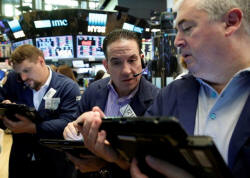 Traders work on the floor of the New York Stock Exchange (NYSE) in