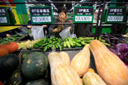 Consumers choose vegetables at a supermarket in Shanghai, China,