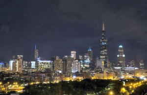 The downtown skyline is seen in Chicago Illinois,
