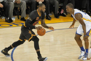 Cavaliers forward LeBron James (23) moves the ball against Golden