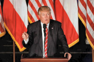 Republican presidential candidate Donald Trump addresses an audience