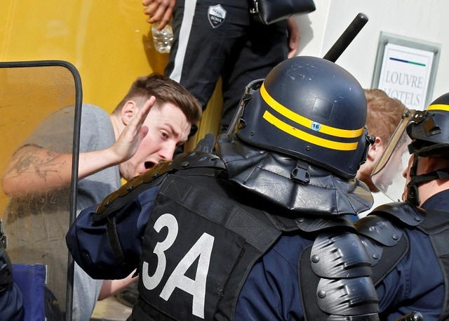 Police and fans clash in the center of Lille, France. REUTERS/Pascal